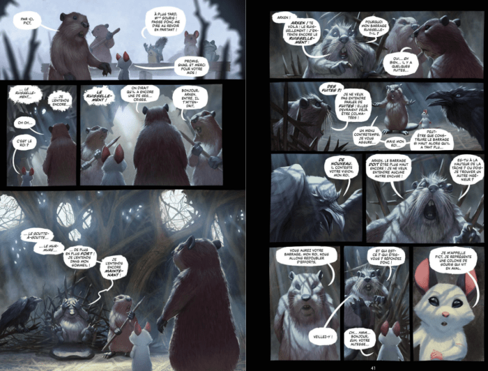 Les illustrations sont toujours aussi belles, avec une colorisation toujours aussi pétante, qui sublime l’aventure de ces animaux dans ce monde bien sombre, dans lequel ils doivent apprendre à survivre et à faire face à de multiples dangers, oscillant entre dangers et inquiétude quant à leur avenir, qui semble plus qu’incertain.