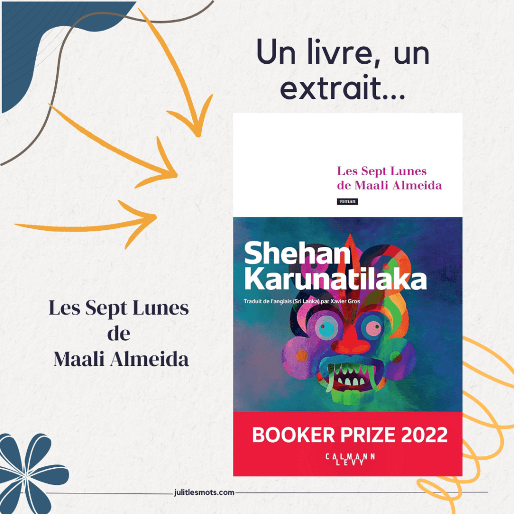 1990, Colombo. Alors que la guerre civile au Sri Lanka est à son apogée, le photographe de guerre Maali Almeida se réveille dans un grand bureau céleste. Une employée harassée l’informe brusquement qu’il est mort, son cadavre gît dans les profondeurs du lac Beira. Depuis cet Entre-Deux, une dernière chance s’offre à lui : Maali dispose d’une semaine – sept lunes –, pour résoudre le mystère de son propre meurtre et révéler des clichés qui changeront le cours de ce conflit sanglant et sans merci.