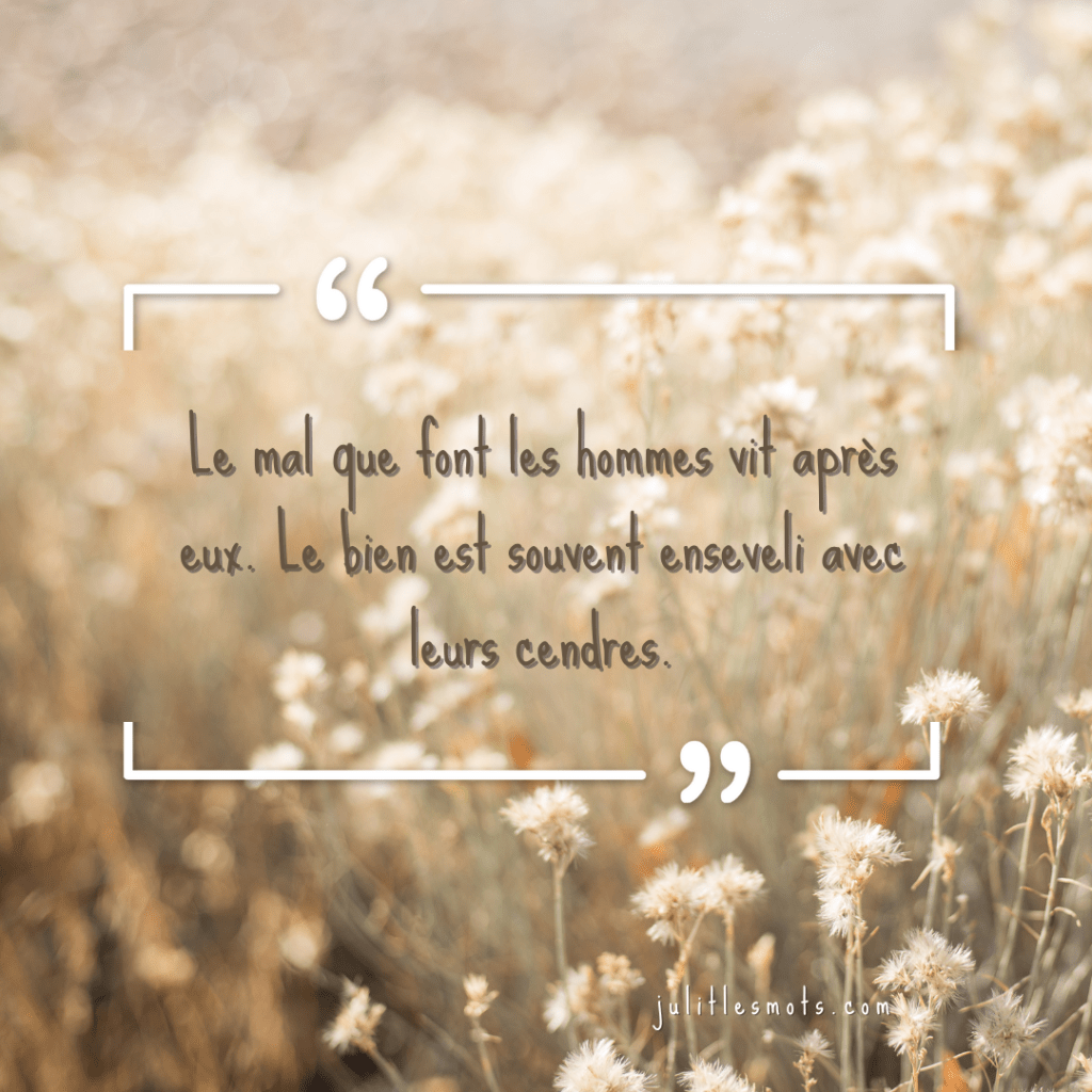 Le mal que font les hommes vit après eux. Le bien est souvent enseveli avec leurs cendres.