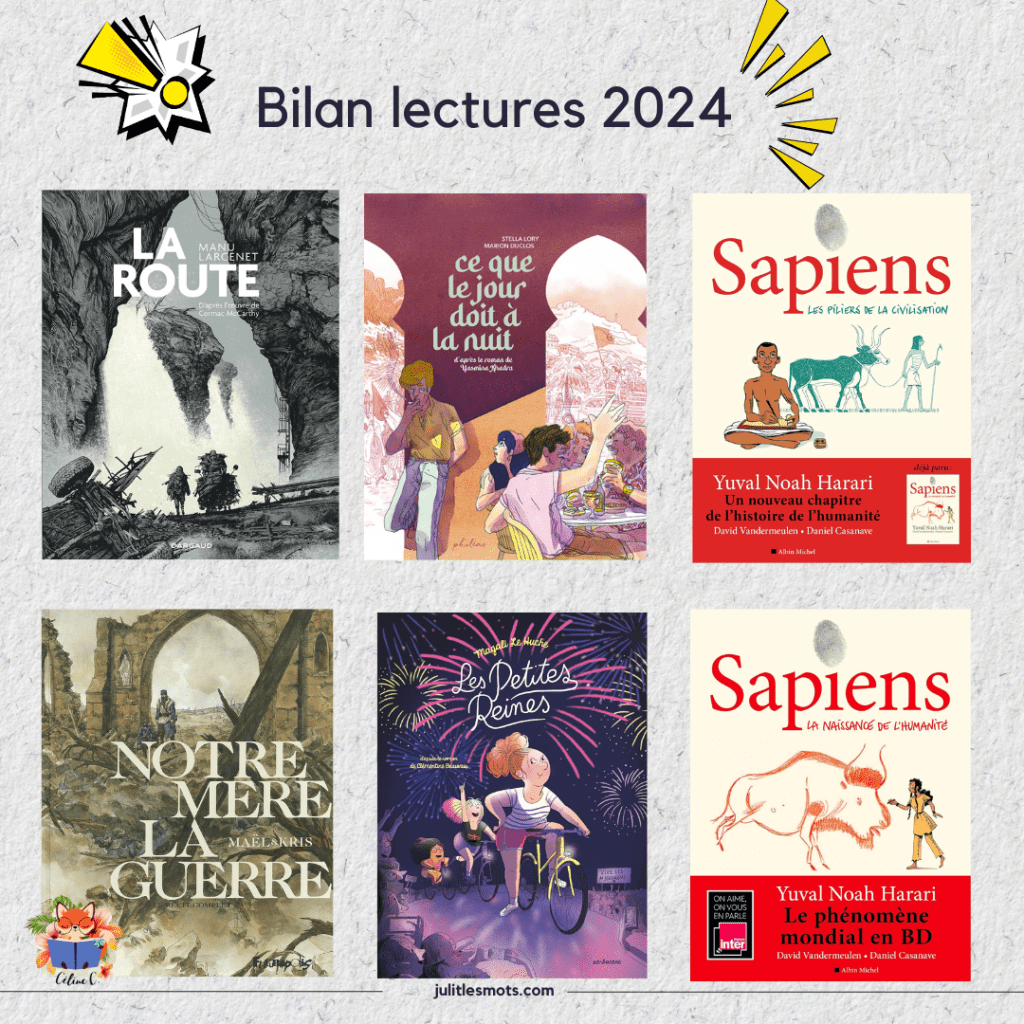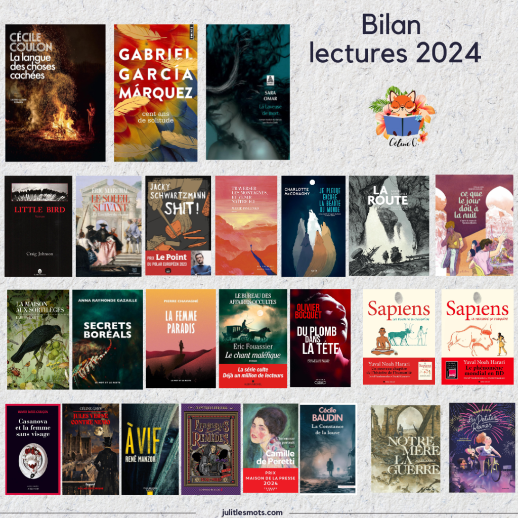 Un beau bilan lecture que le tient Céline. Le Cécile Coulon est dans ma PAL. C’est une autrice que j’aime beaucoup. Gabriel Garcia Marquez est un immense auteur. Je suis heureux de retrouver « Notre mère la guerre » dans ton classement. On l’a beaucoup aimé tous les deux. Je note Sapiens la série en BD qui me tente beaucoup. Je te souhaite une belle année livresque en 2025 ! 😊