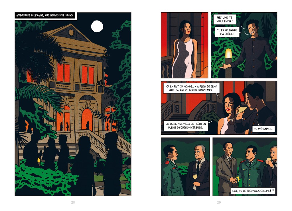 Une BD géopolitique où une jeune journaliste ukraino-vietnamienne enquête sur l’ uberisation du travail des filles de la nuit et tombe dans une affaire d’Etat avec espions russes, ukrainiens, chinois et généraux vietnamien dans le contexte de la propagation d’un mystérieux virus et d’ Hanoi la nuit…