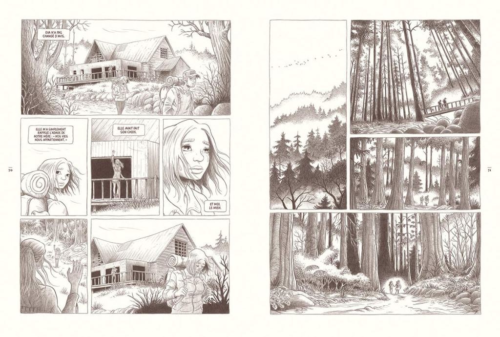 📚 Dans la forêt de Lomig, roman graphique adapté du livre de Jean Hegland : Rien n’est plus comme avant. Le monde tel qu’on le connaît semble avoir basculé : plus d’électricité ni d’essence, les trains et les avions ne circulent plus. Des rumeurs courent, les gens fuient. Nell et Eva, dix-sept et dix-huit ans, vivent depuis toujours dans leur maison familiale, au coeur de la forêt. Quand la civilisation s’effondre et que leurs parents disparaissent, les deux soeurs demeurent seules, bien décidées à survivre. Il leur reste, toujours vivantes, leur passion de la danse et de la lecture. Mais face à l’inconnu, il va falloir apprendre à grandir autrement, à se battre et à faire confiance à la forêt qui les entoure, emplie d’inépuisables richesses.