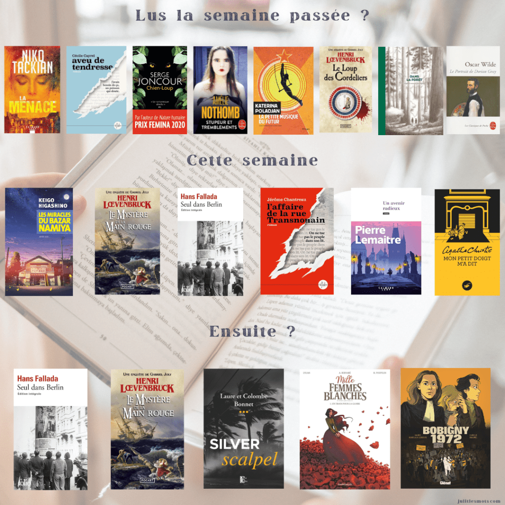 C’est lundi, que lisez-vous ? Rendez-vous incontournable repris par Les paravers de Millina que vous êtes nombreux à apprécier. Cet article me permet de reprendre ce qui a été fait la semaine précédente et de faire le point sur nos différentes lectures.