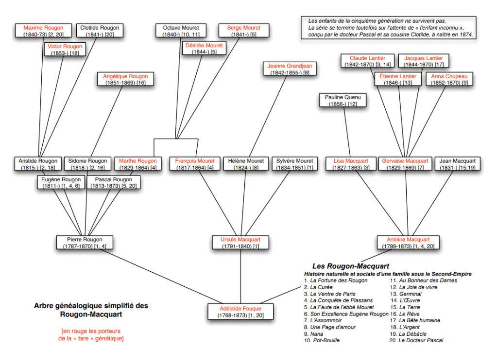 - Lire selon l’ordre suggéré par Emile Zola, permettrait de mieux appréhender la généalogie assez complexe de cette famille.