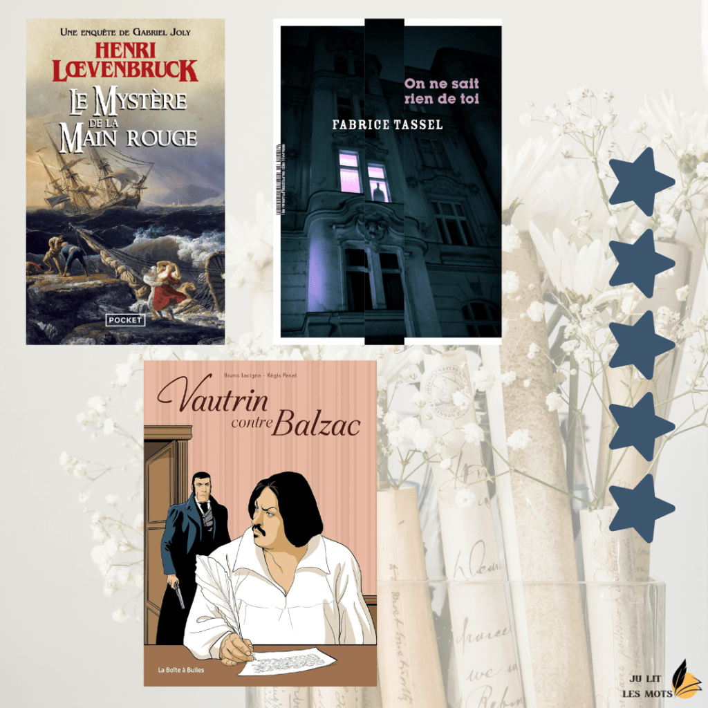 Je connais ça, je n’ai pas encore publié mes bilans de mai et juin. La raison, je tiens à écrire quelques lignes sur chaque livre, et je n’ai pas eu le temps de le faire, et ça m’embête car les cinq derniers de mon bilan de mai sont des livres que j’ai adorés. Bref, pas grave de publier mars en juillet, comme Hedwige, j’adore lire les bilans !