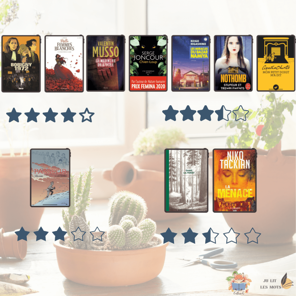 Quel beau bilan ! Je recherche moi aussi une plateforme pour lire des BD en numérique. J’ai une Kobo fnac mais je ne sais pas si je dois la changer pour la nouvelle en couleur. Tu as une kindle ou une Kobo Julie ? Passe un excellent weekend 🙂☀️