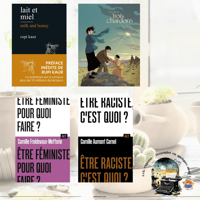 La bande dessinée Trois chardons me plairait certainement avec cette histoire de sororité, faite d’émotions. Pour les livres documentaires, j’ai aperçu cette collection sur le Collectif polar aussi et je te remercie pour le rappel Céline. Tu m’as fait rire en parlant de date de péremption, est ce que, justement, ce n’est pas ce genre d’idée qu’il faut combattre par le féminisme ? 😁 Merci pour ces idées de lecture Céline 😘