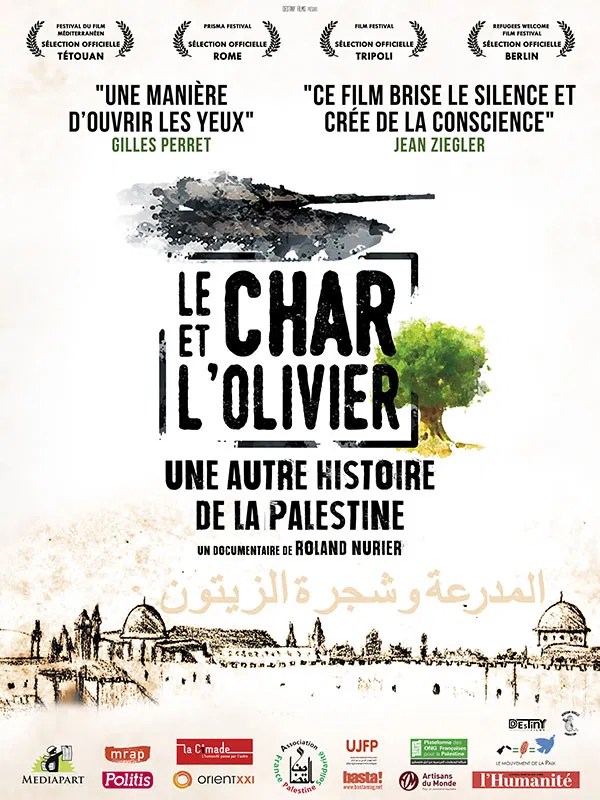 Le char et l’olivier, une autre histoire de la Palestine : Le Char et l’Olivier rappelle un certain nombre de fondamentaux oubliés et apporte un éclairage inédit sur l’histoire de la Palestine. En mêlant analyse géopolitique, interviews de personnalités internationales expertes sur le sujet et témoignages de citoyens palestiniens et français, ce documentaire propose les clefs de compréhension de ce que les médias appellent le conflit israélo-palestinien. De quoi débarrasser les esprits des clichés et préjugés!