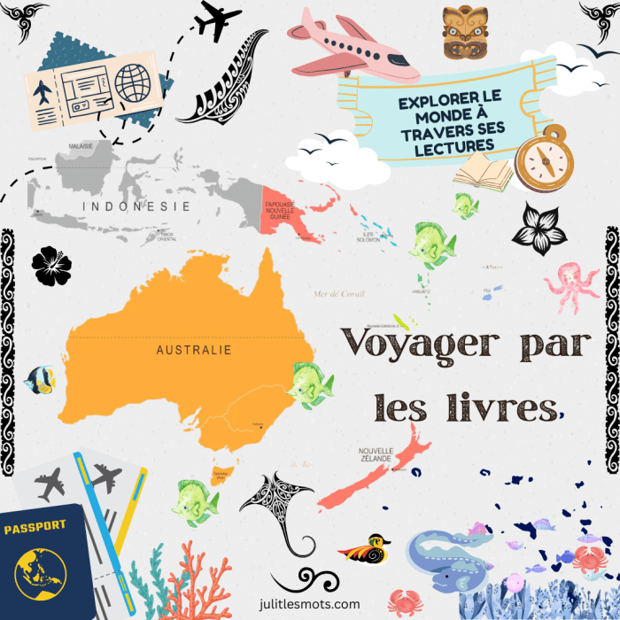 Pour l’Australie et la Nouvelle-Zélande, je peux te suggérer ruby moonlight d’Abi Cobbi Eckermann et La baleine tatouée de Witi Ihimaera, ce sont 2 lectures qui m’ont beaucoup marquée. Jusqu’ici je n’ai fait que de bonnes, voire excellentes lectures avec les éditions Au vent des îles, tu trouveras sûrement plein de pépites pour étoffer ce billet dans leur catalogue 😉
