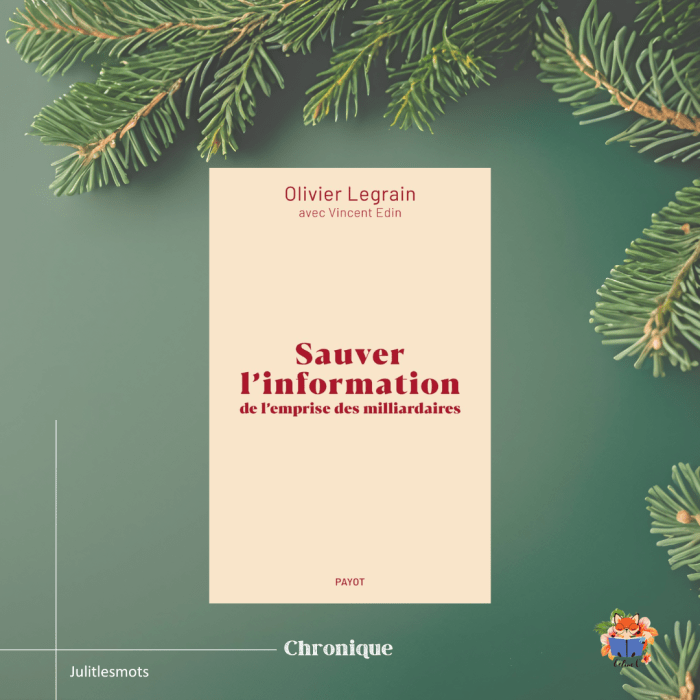 Les avis de Céline C. : Sauver l’information de l’emprise des milliardaires d’Olivier Legrain et Vincent Edin